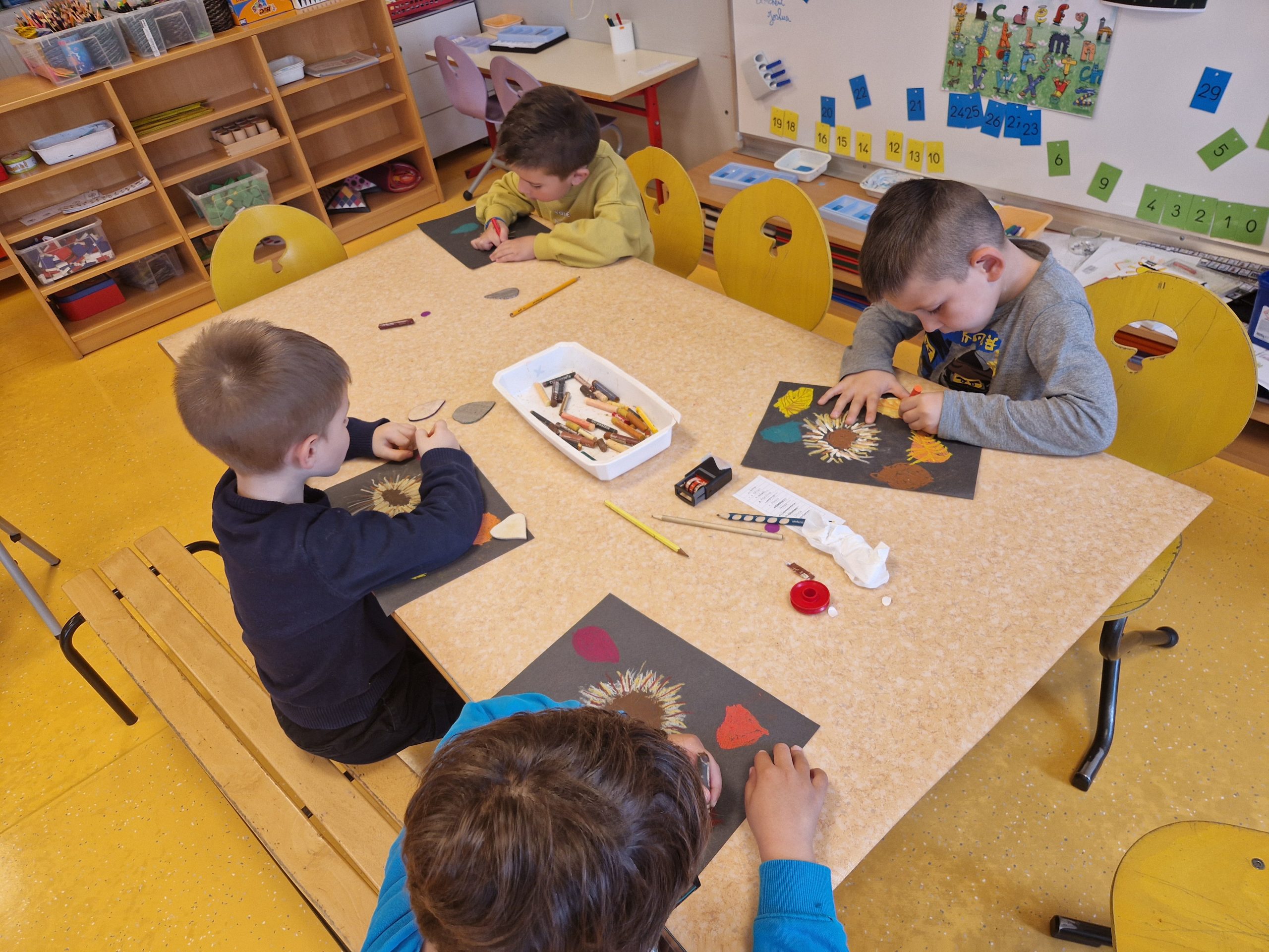 Pour s’entraîner au tracé des traits rayonnants et obliques, les élèves de Grande Section ont réalisé ces petits hérissons tout mignons.