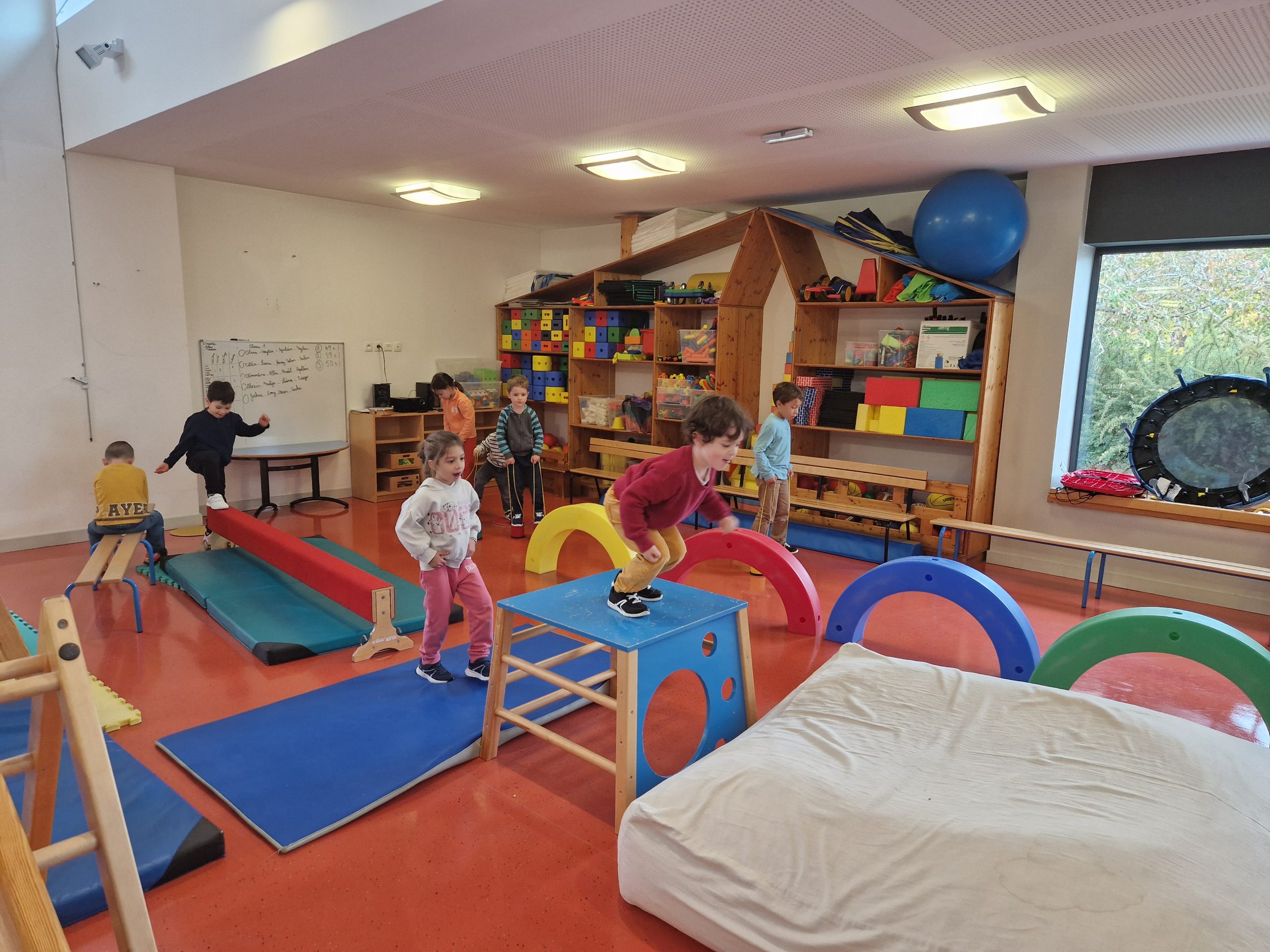 Les élèves se réjouissent de retrouver un parcours en salle de jeux. Il sera encore disponible pendant une semaine à la reprise, en novembre.
