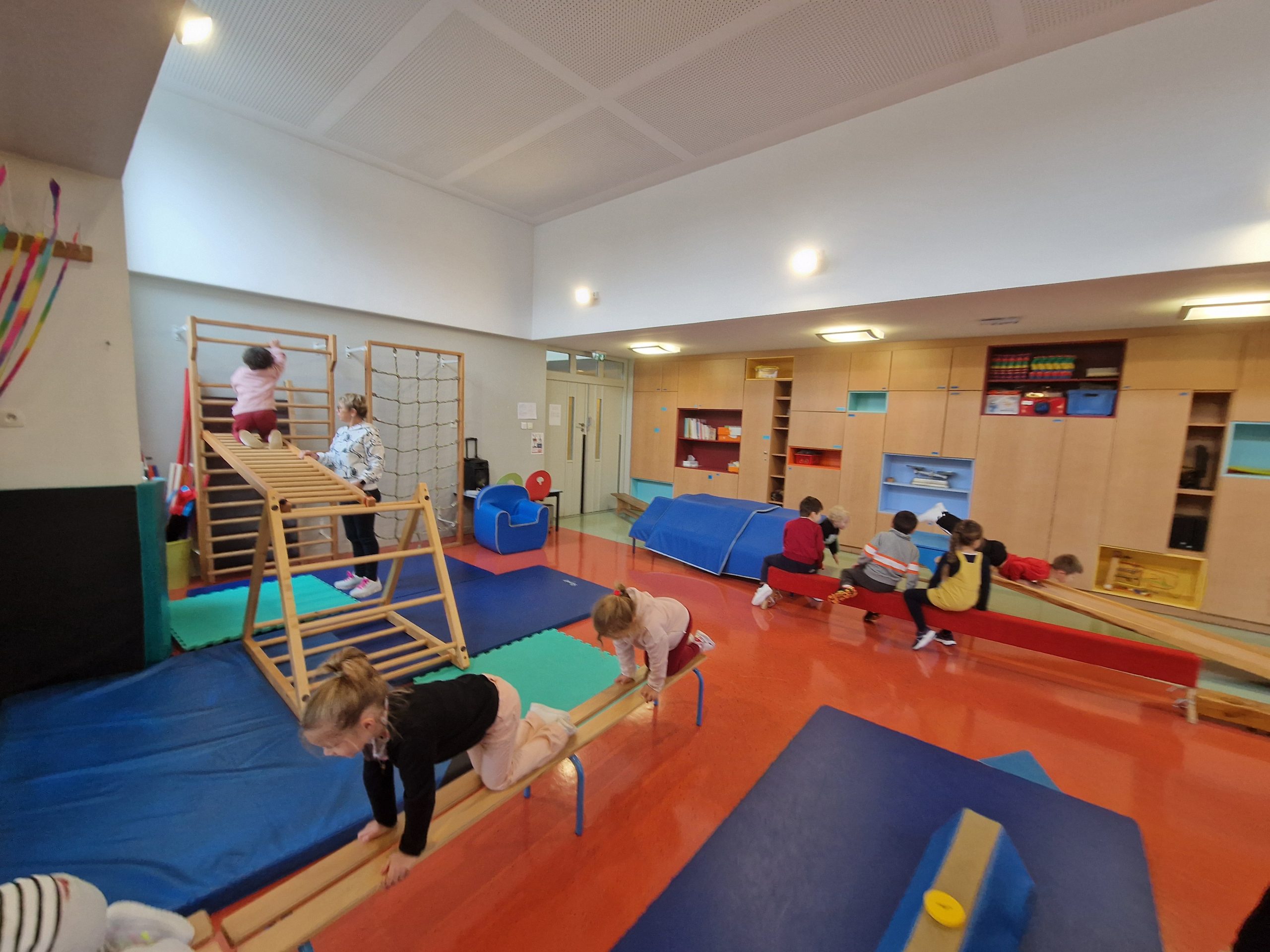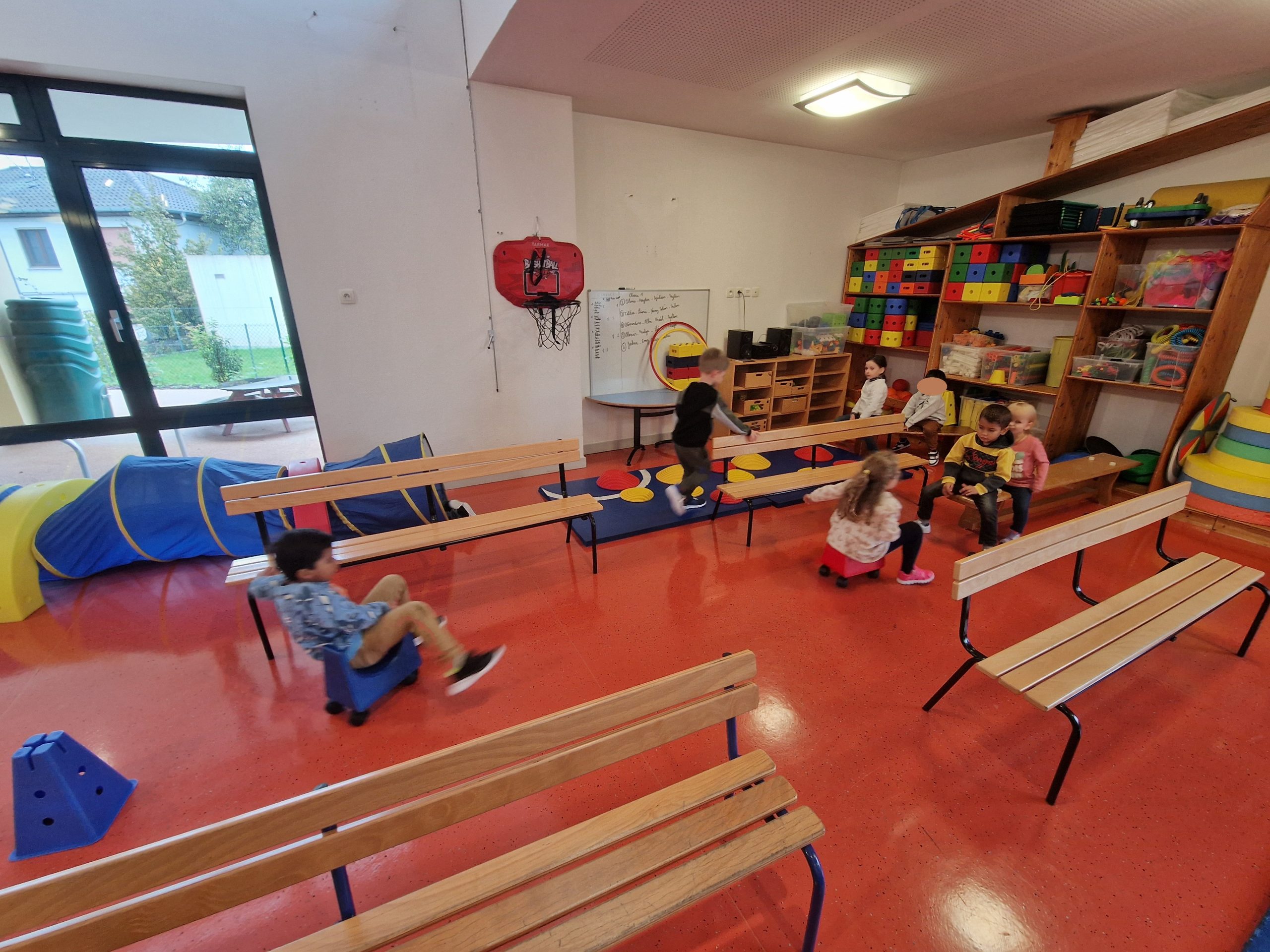 En septembre, les élèves ont découvert avec bonheur le parcours d’initiation mis en place en salle de motricité.